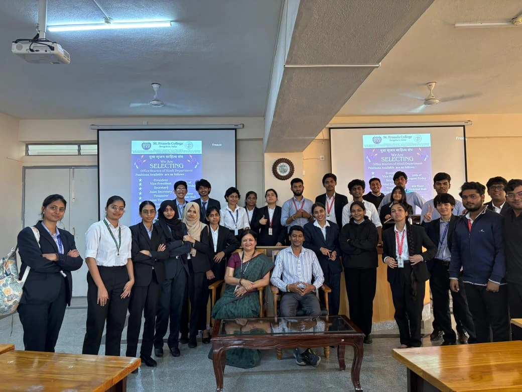 The election of new office bearers for the academic year 2025-2026 was successfully conducted by the Hindi Club, “Yuva Srujan Sahitya Sangh” was held on 29/08/2025 in the 4Th Floor Seminar Hall of the college. The event witnessed enthusiastic participation from students, marking an important milestone in the club’s leadership journey. The election was conducted following a transparent and democratic process, with all members being encouraged to participate in the nomination. The event served not only as a leadership transition but also as an opportunity for students to showcase their enthusiasm, commitment, and interest in contributing to the Hindi Club. The atmosphere in the seminar hall was filled with energy and excitement as members actively engaged in discussion and supported their peers, reflecting the unity and collaborative spirit of the club. The election process began with an open call for nominations, in a fair, transparent, and democratic manner, ensuring equal opportunity for all candidates. It was followed by candidate speeches and presentations outlining their vision and objectives for the upcoming term and the collective commitment towards building a stronger and more vibrant Hindi Club. The newly elected office bearers are expected to bring fresh, energy, creativity, and responsibility to the organization. Their leadership will play a vital role in shaping upcoming literary and cultural activities while furthering the mission of promoting Hindi language and literature on campus. The election not only resulted in the appointment of new leaders but also strengthened unity, democratic spirit, and cultural enthusiasm among all members.
