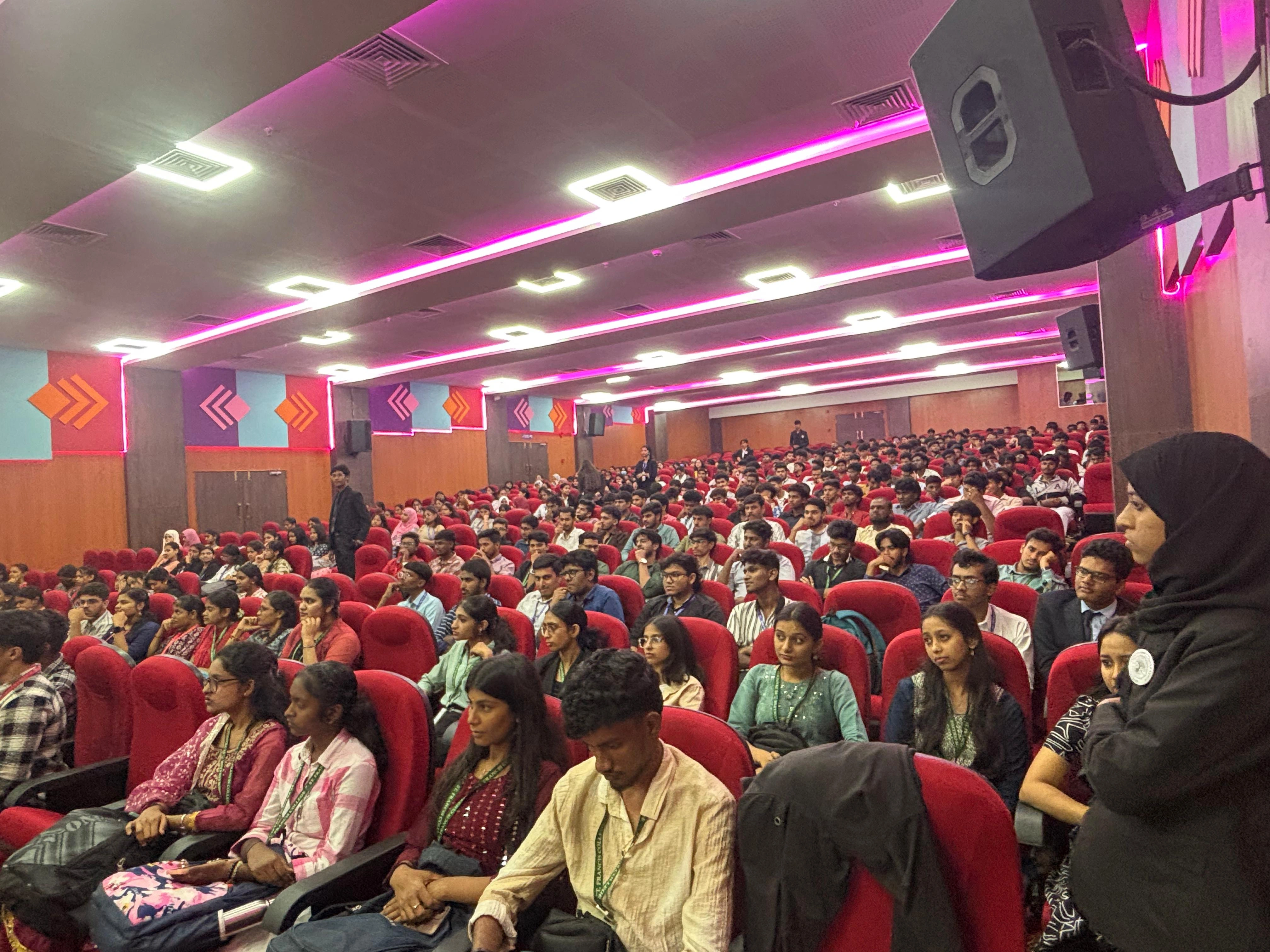 The Hindi Club Yuva Srujan Sahitya Sangh successfully organized the Hindi Investiture Ceremony and Prize Distribution on 18 September 2025 at 1:30 pm in the PU Campus Auditorium for all degree students. The programme aimed to introduce the new office bearers, present the club’s upcoming activities, launch the newsletter, and recognize students’ achievements.The event began with confident anchoring by Zaiba and Zunaira, who ensured a smooth flow of the programme. A soulful prayer by Harshika Chaubey set a serene and positive tone. Aaniya delivered the welcome address, warmly greeting guests, teachers, and students while emphasizing the importance of Hindi and cultural activities.The inauguration was marked by the symbolic watering of a plant, representing growth, knowledge, and the nurturing of language and culture. This was followed by the launch of the Hindi Club newsletter, showcasing students’ literary creativity and commitment to Hindi expression. A memory video reflecting past events evoked nostalgia, and seniors were honored with mementos as a gesture of gratitude for their contributions.The newly elected office bearers were formally declared, instilling a sense of responsibility and pride among students. Prize distribution for various competitions encouraged talent and motivated participants. Brother’s inspiring speech emphasized values, discipline, and purpose in life. A brief note on Hindi Diwas highlighted the national importance of Hindi.Cultural performances, including a drama titled “Jadoo Ka Kaleen,” singing, and dance, added vibrancy to the programme. The event concluded with a vote of thanks by Shaik Owais Basha, President of the Sangh.Overall, the ceremony was a meaningful celebration of Hindi, leadership, creativity, and cultural pride, leaving lasting memories for all participants.