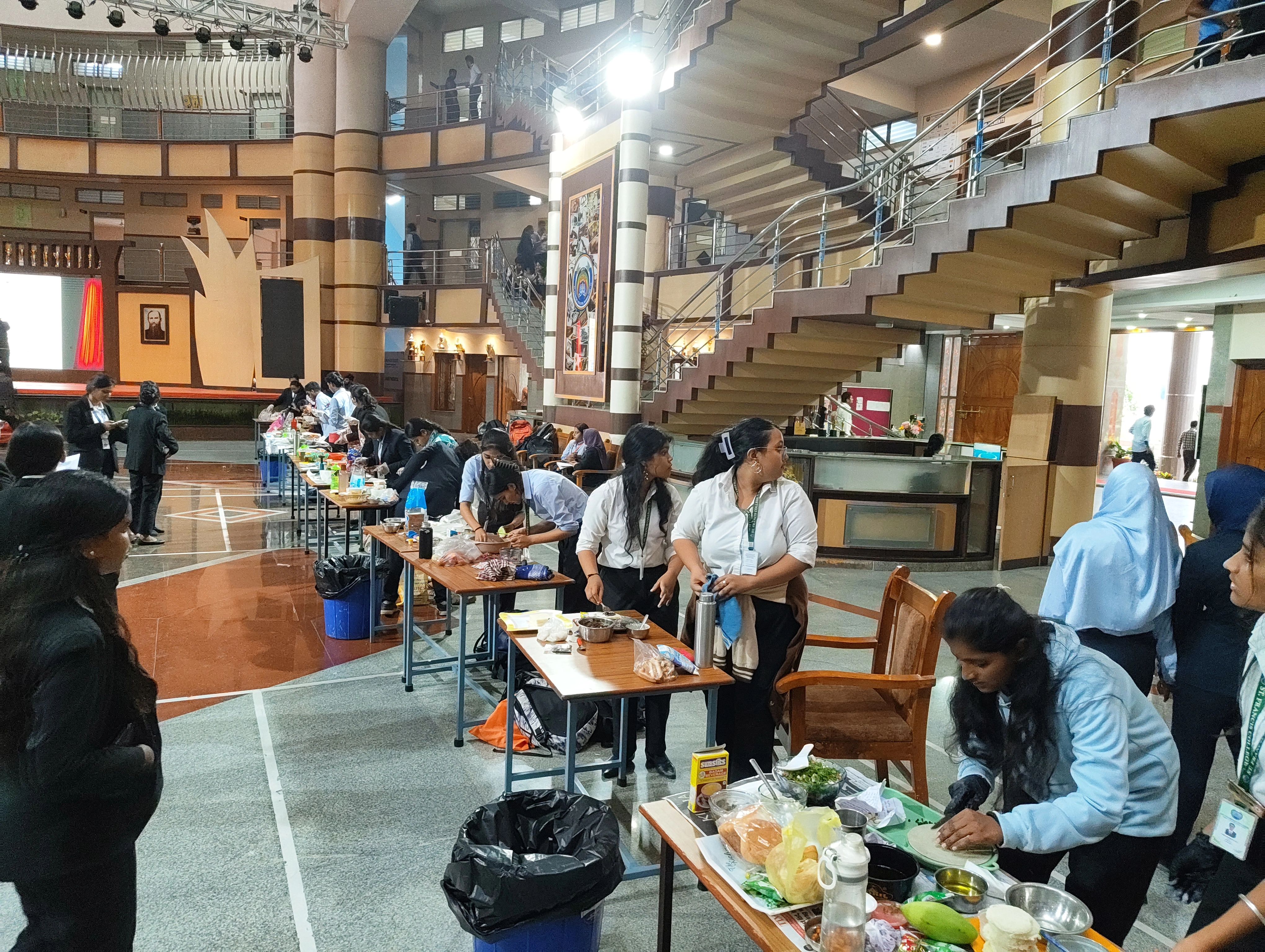 The ‘Cooking Without Fire’ competition was successfully organized on November 5, 2025, at 2:30 PM in the College Quadrangle, under the auspices of the Chinnudi Kannada Sangha and Yuva Srijan Sahitya Sangh of the Department of Languages. The main objectives of the competition were to promote the art of cooking, raise awareness among students about new tastes and healthy food, and provide a platform to showcase creative culinary skills without the use of fire. A total of 20 teams from various semesters of the college enthusiastically participated in this competition. Each team demonstrated their culinary expertise by preparing innovative and delicious dishes without applying any heat. The creativity and hygiene maintained by the participating students were highly commendable.Shri Dr. Rama Krishnappa, Head of the College Library Department, and Smt. Bharathi G R, Assistant Professor from the Computer Science Department, graced the event as the Chief Judges. The judges meticulously scored the contestants based on the taste, presentation, and healthy quotient of the prepared dishes.The College Principal, Dr. R.N. Subba Rao, was present at the event, where he appreciated the dedication of the students and extended his best wishes. The smooth execution of the program was ensured by the diligent efforts of the organizers and student representatives. Three winning teams were respectfully honored with a Cash Prize from the college on the occasion of KANNADA RAJYOTSAVA DAY. The ‘Paaka Kaleya Power Play’ competition successfully inspired students to develop not only culinary skills but also a healthy lifestyle and a creative mindset. The event concluded successfully and was a memorable one for all who participated..webp)